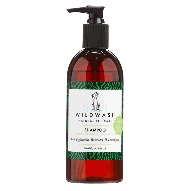 Our WildWash Pro Dog Shampoo for Deep Cleaning and Deodorising uses Peppermint, Rosemary and Lemongrass, all highly fragrant and deodorising, to help neutralise toxins and bacteria, improve scent and leave your pet thoroughly clean and sweet smelling.